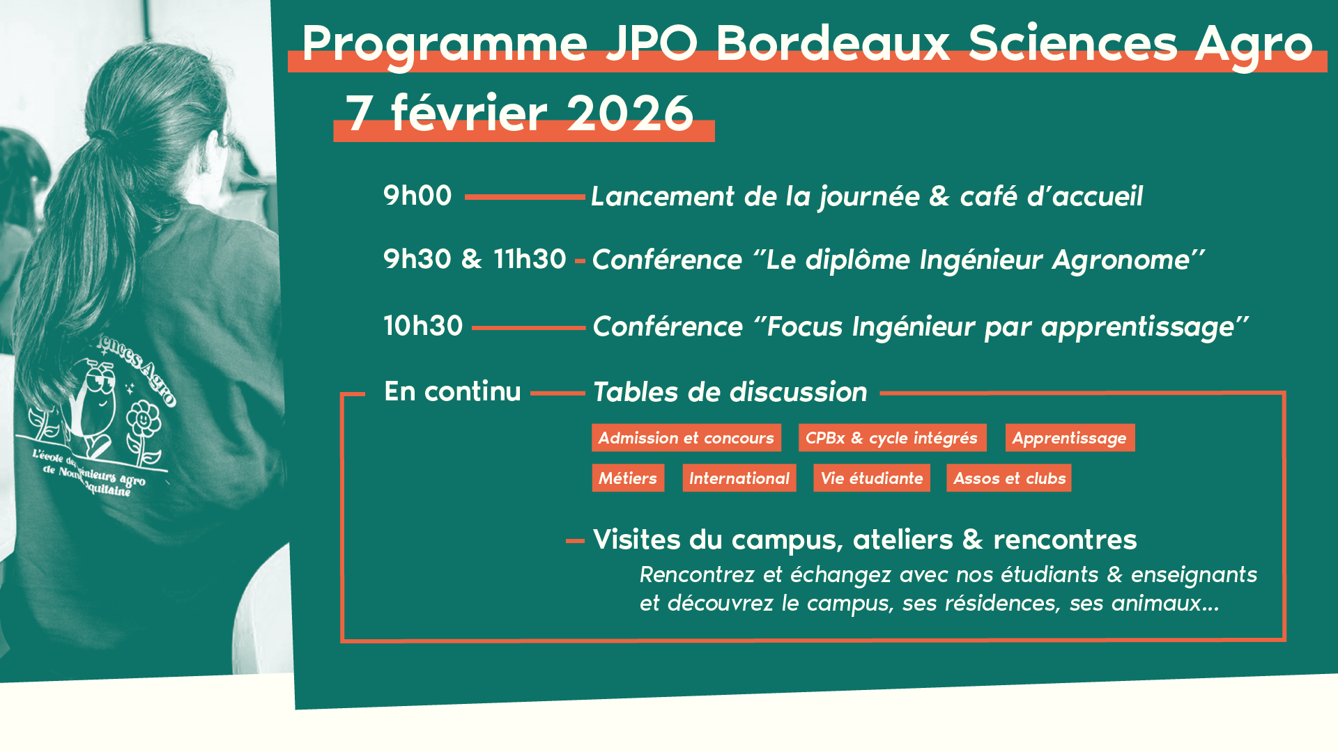 Vous découvrirez également le programme pour la Journée Portes Ouvertes de Bordeaux Sciences Agro qui aura lieu le samedi 7 février 2026 !